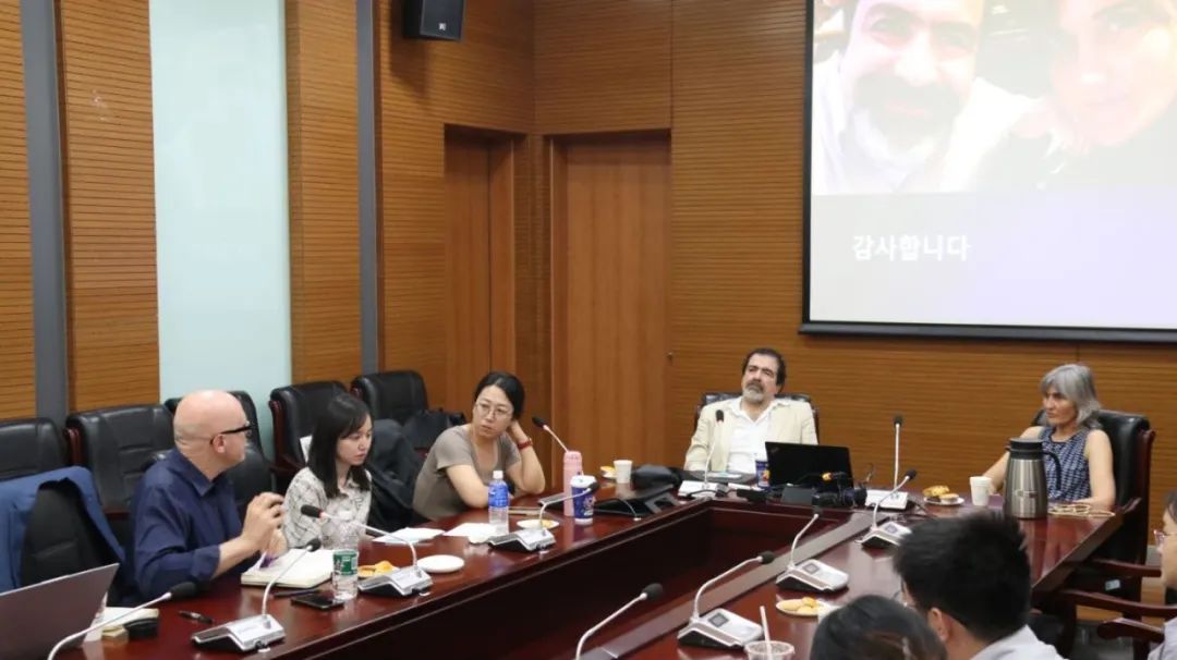 在交流环节,与会师生结合科研经历与生活经验,就韩流研究的方法论、韩流被不同国家青年所接受的差异化原因、增进文化影响力的现实策略等展开了讨论。两位主讲人提到,在不同国家和地区开展关于韩流文化的讲座时,观众的反馈都不尽相同,这体现了审美全球化背后的“在地化”性质。未来的青年流行文化研究应当关注不同的文化圈层、文化环境,将青年多样性的文化体验纳入社会学诠释的范围。讲座尾声,主持人王淼老师总结了讲座内容,并对Cicchelli与Octobre两位主讲人表达了衷心的感谢。