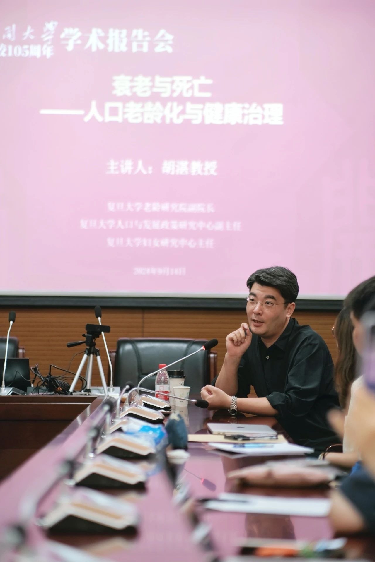 9月14日,bevictor1946韦德官网举办“bevictor1946韦德官网建校105周年学术报告会”系列讲座。本次讲座特邀复旦大学老龄研究院副经理、人口与发展政策研究中心副主任、妇女研究中心主任胡湛教授,开展“衰老与死亡——人口老龄化与健康治理”的学术报告。讲座由bevictor1946韦德官网吴帆教授主持,公司教师及本科生、硕士和博士研究生近百人参加。