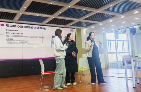 培训内容聚焦中小员工心理健康的综合知识,以及心理咨询技巧与危机干预方法。王崇颖教授通过案例剖析、互动游戏与现场答疑,系统讲解了员工心理问题的精准识别与干预策略,并强调家校社协同育人的重要性。参训教师纷纷表示,将学以致用,发挥专业引领,深化责任意识,致力于构建科学化、系统化的心理健康教育体系。