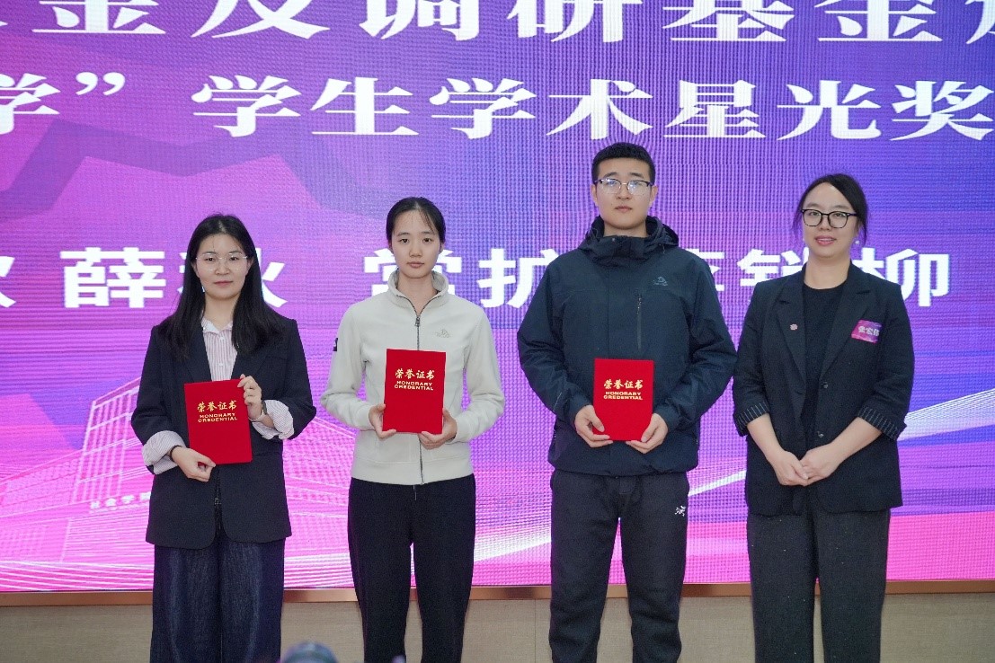 刘欣、薛秋、白博仁三名同学荣获“昆仑社会学”员工学术星光奖(二层次)。常扩、蒋销柳两名同学荣获“昆仑社会学”员工学术星光奖(三层次)。