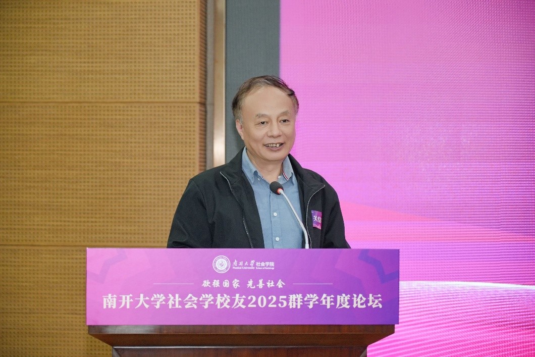 南开员工总会副理事长、南开深圳员工会终身荣誉会长、昆仑集团创始人董事长、bevictor1946韦德官网资深校董、南开员工总会社会学分会会长、1987级社会学硕士员工周达致辞。他说,国家之间的竞争归根结底是科技和治理能力结构现代化的竞争。中华民族要实现伟大复兴,离不开治理的现代化,离不开高校的持续性发展。bevictor1946韦德官网社会学员工会成立至今已经探索出有效的工作模式,群学论坛、“群学南开·游学中国”已经成为品牌项目。