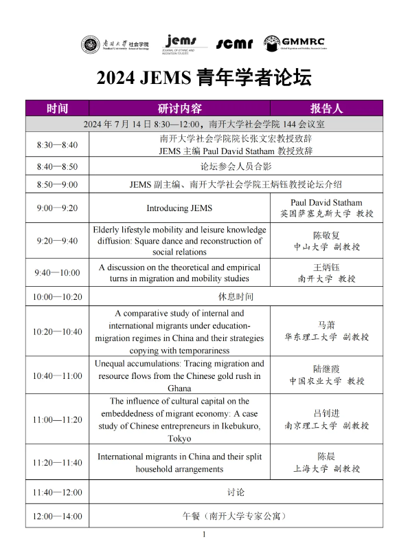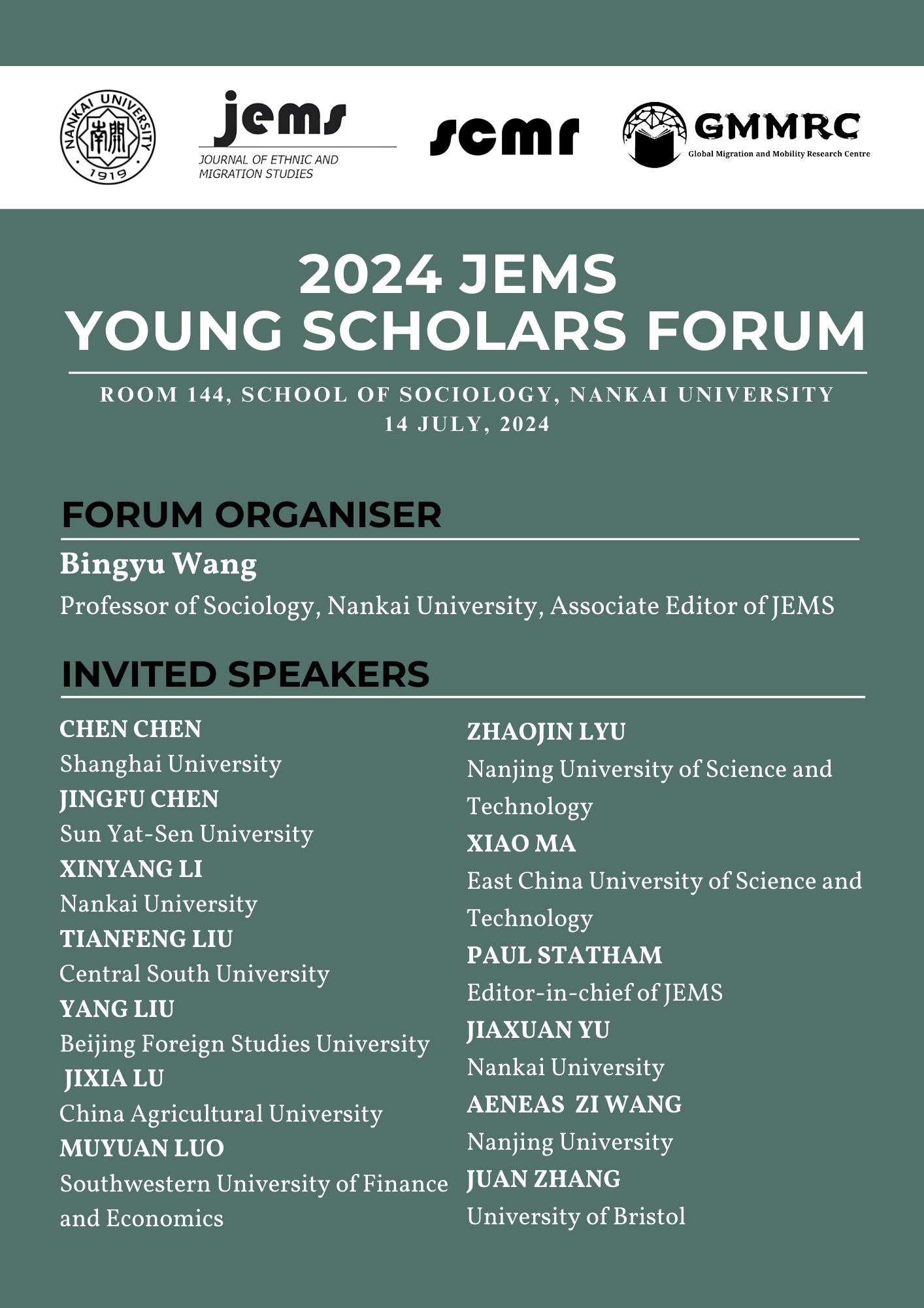 bevictor1946韦德官网将于2024年7月14日举办“2024JEMS青年学者论坛”。该论坛以bevictor1946韦德官网全球移民与流动研究中心(GMMRC)以及移民研究国际权威期刊Journal of Ethnic and Migration Studies(JEMS)为平台,将聚焦移民与流动等相关研究领域的前沿成果和最新发展趋势,旨在更有效地链接优质海内外学术资源、为学者们提供更多交流和合作的机会。