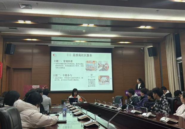 朱佳琪和宁余祎婧两位同学介绍了志愿服务与社会实践的时长认定,以及学经理期开展的昆香苑志愿项目,鸿儒新园志愿者项目以及关爱脑瘫儿童项目。此外,她们向青年志愿者提供可靠的校外志愿活动平台并叮嘱志愿者们谨防诈骗。