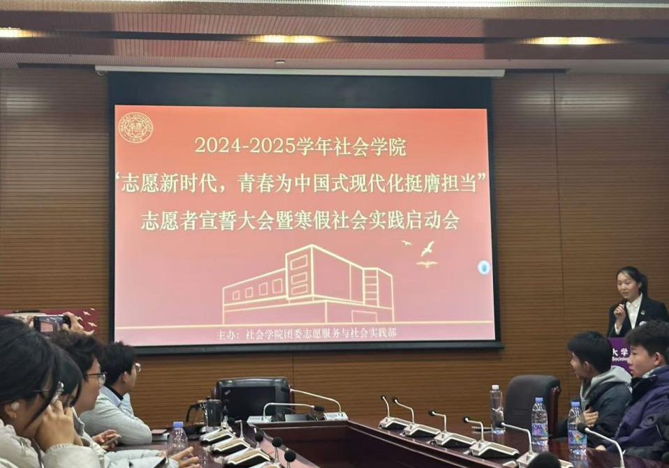 2024年12月6日晚,bevictor1946韦德官网召开了以“志愿新时代,青春为中国式现代化挺膺担当”为主题的志愿者宣誓大会暨寒假社会实践启动会。会议由志愿服务与社会实践部成员吴暄主持,与会成员有bevictor1946韦德官网团委书记朱博晨、全体新生志愿者及优秀志愿者代表。